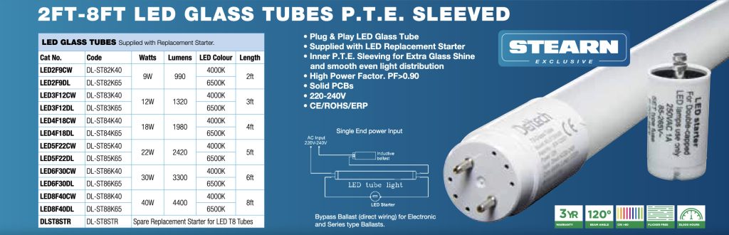 • Plug & Play LED Glass Tubes